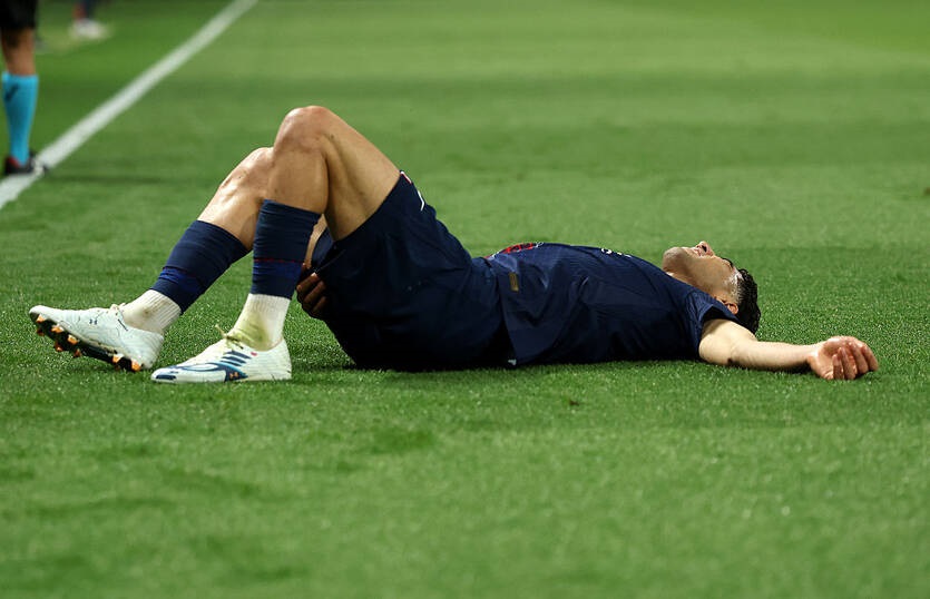 Зазначається, що на 87-й хвилині 27-річний гравець у боротьбі з Конрадом Лаймером за м’яч пошкодив стегно, хоча контакту з хавбеком Баварії не трапилося, повідомляє L’Équipe.