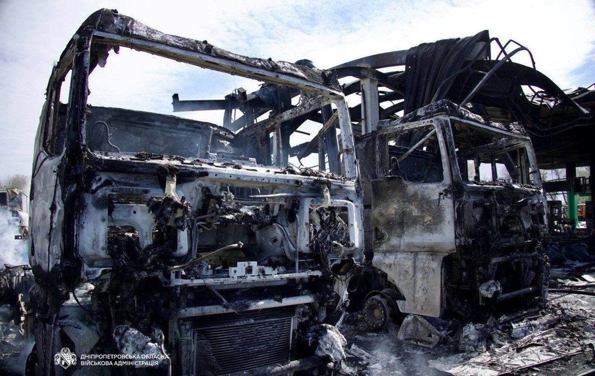 “Рятувальники загасили пожежу на АЗС у Дніпрі, яка виникла через ворожу атаку сьогодні вранці. Знищені вісім вантажівок і чотири легковики”, – написав Ганжа.